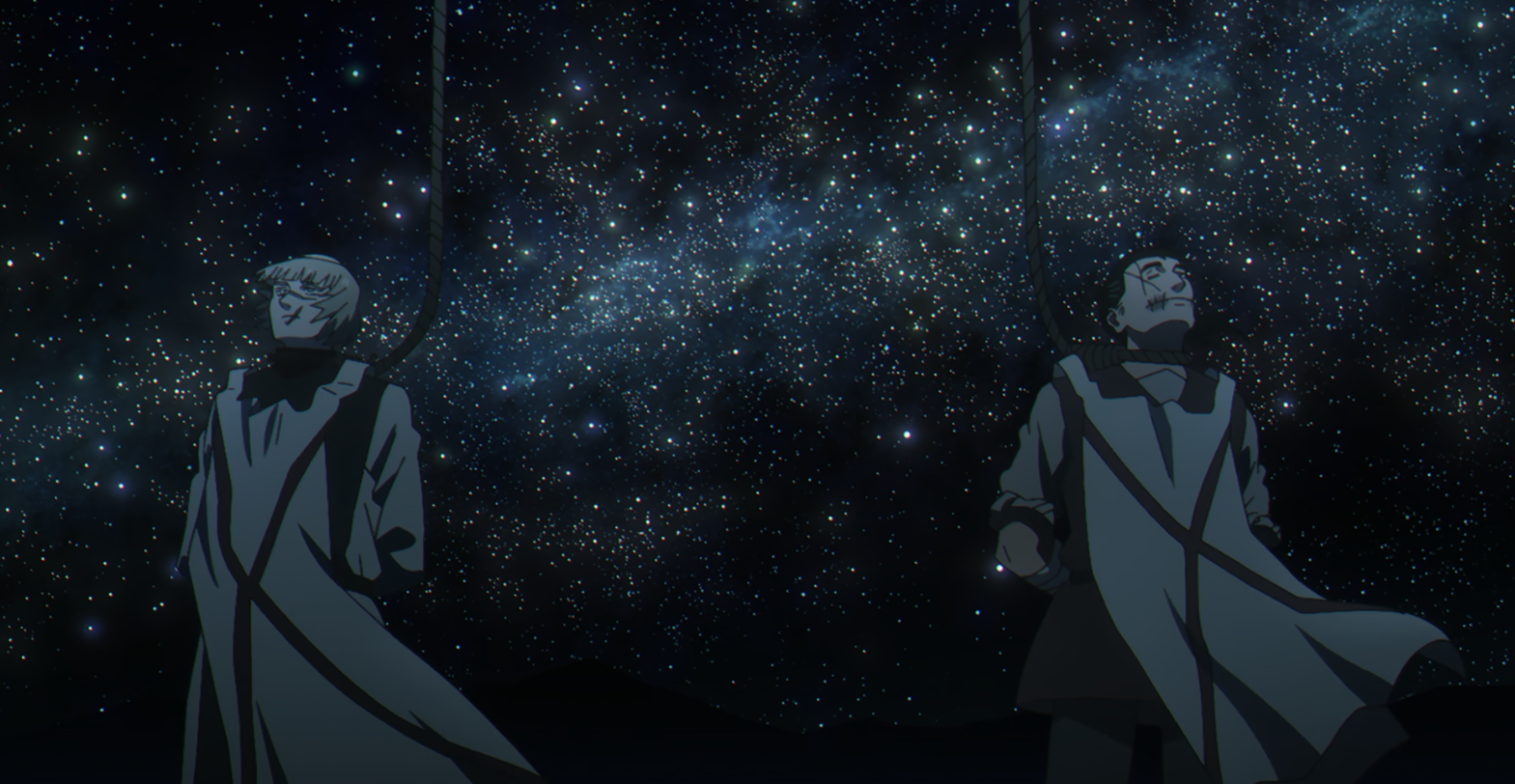 이 애니에 대해 짝꿍한테 몇 번 듣긴 했는데 별 관심 없다가 노래가 너무 좋아서 자연스레 흥미가 생겨 1화를 틀었는데 시작부터 고문 장면이 나와서 으아악 하고 도망쳤었음..